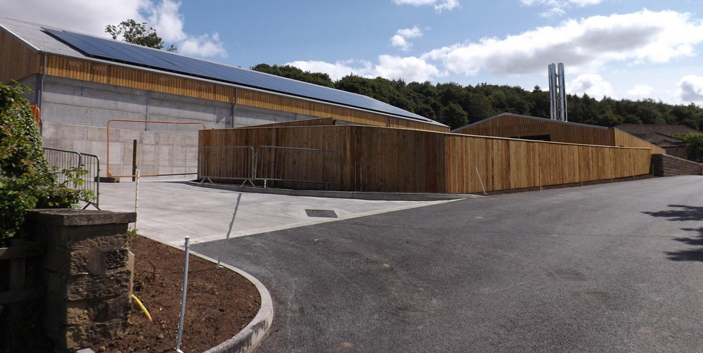 The boiler house and three adjoining fuel storage sheds were installed, as well as enclosing the 500KW Viessmann biomass boiler and 5000 litres of water storage, the building also keeps dry the 600 tonnes of woodchip needed every year to fuel the heating system.